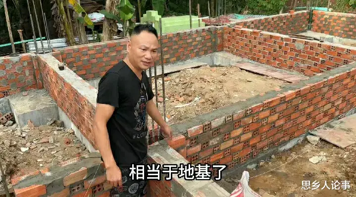 再看下面这张图,圈梁面并不是这房子的零线(房屋地面水平线),零线在是在圈梁上面的第7块砖上,因为要抬升地基的高度,做了圈梁达不到设计高度,只能做7层砖来垫高,然后买沙填平基坑,让零线地面以下夯实。