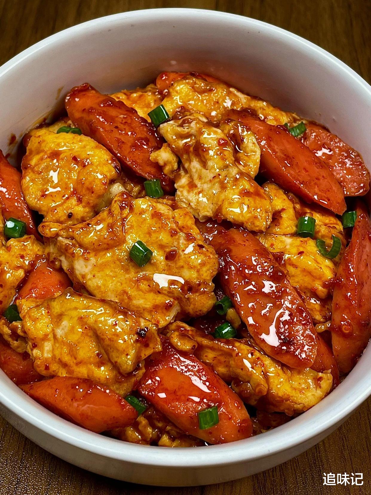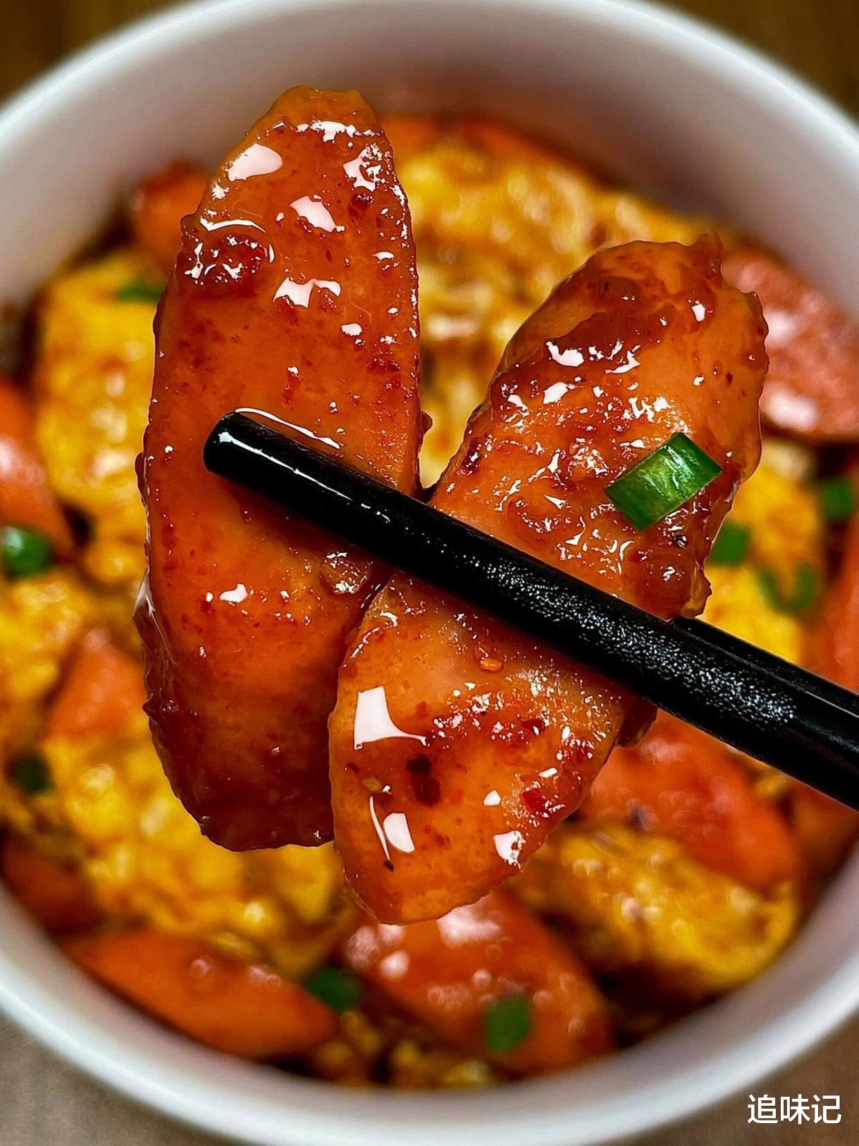 火腿肠煎得外焦里嫩,鸡蛋嫩滑可口,酱汁浓郁醇厚,带着微微的酸甜和辣味,每一口都充满了家的味道,简单却让人回味无穷。