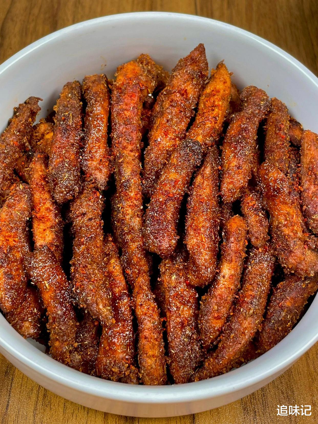 鸡胸肉外焦里嫩,孜然和辣椒的香气浓郁,咬下去肉汁四溢,带着微微的辣味和孜然的独特风味,越吃越香。