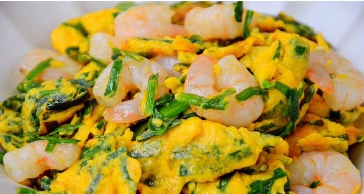 材料:韭菜150克、鸡蛋2个、虾仁80克、盐4克、料酒1汤匙、黑胡椒粉少许。