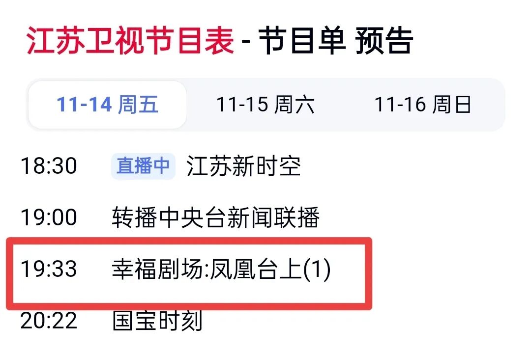 而就在11月14日,也就是今天,江苏卫视率先上了一部古装大剧《凤凰台上》。