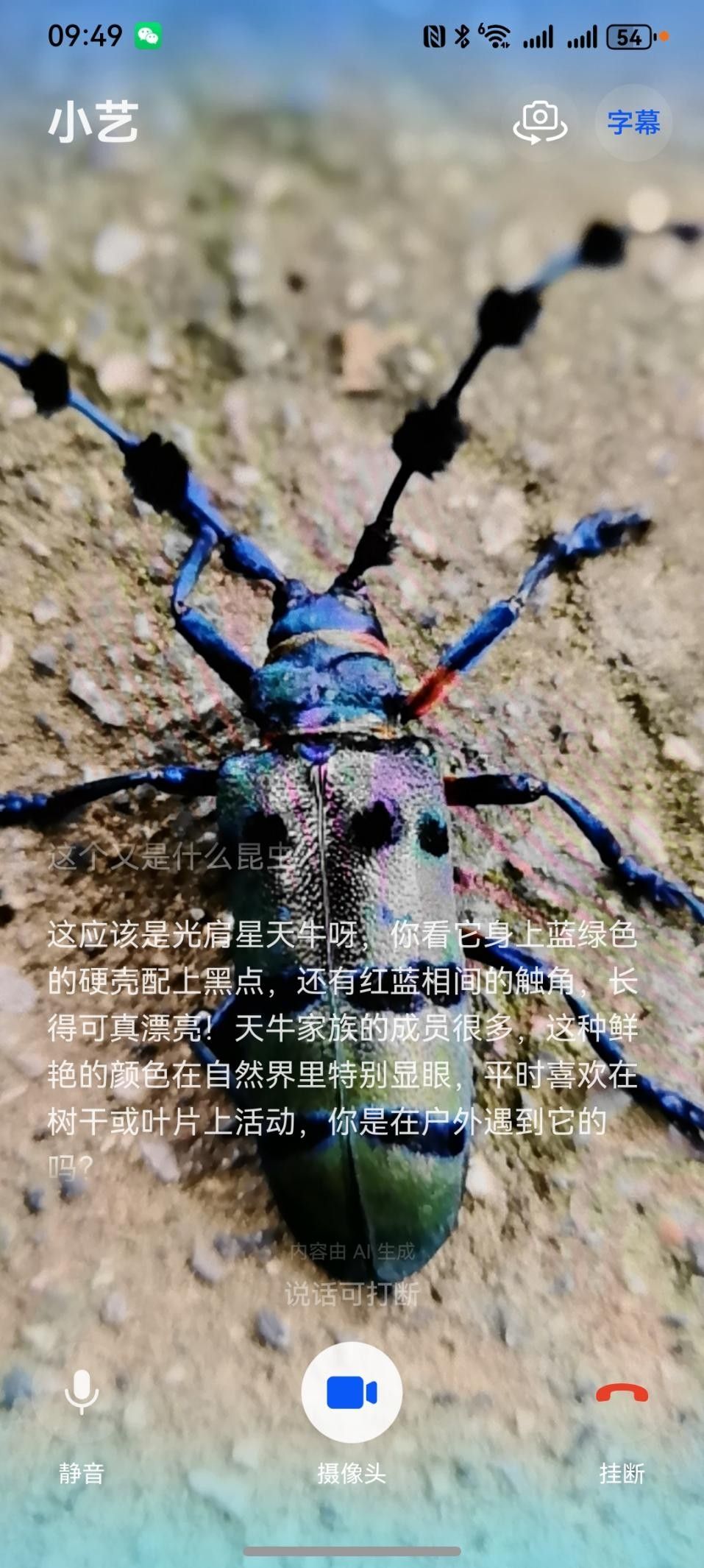 上周末在公园,儿子眼尖地发现了一只趴在石头上的甲虫,色彩斑斓,非常漂亮。他兴奋地拉着我,我立刻掏出手机,唤醒小艺说“小艺你看”,很快就开启“小艺看世界”对准甲虫。小艺看世界立马就给出答案,我挑重点念给儿子听:“这是光肩星天牛,你看它蓝绿色的硬壳和红蓝相间的触角,很漂亮吧?” 小艺看世界还补充了关键信息:“这种鲜艳的颜色在自然界里很显眼。” 一问一答间,孩子的认知库又扩充了。