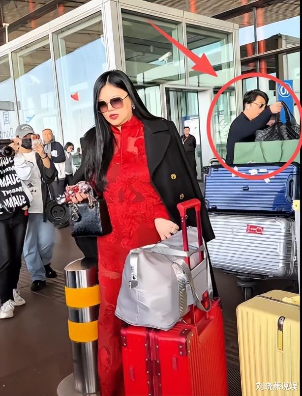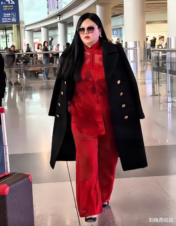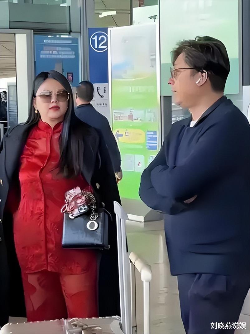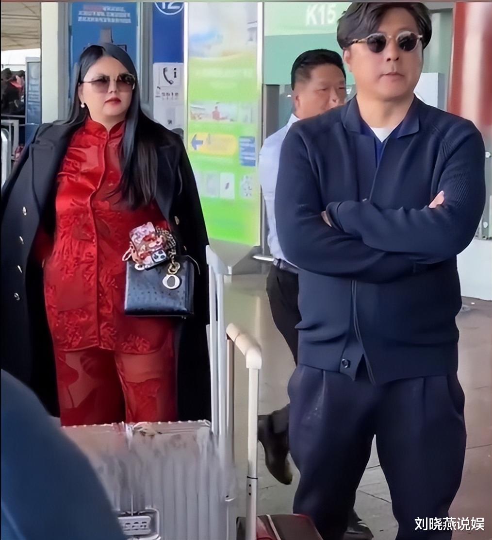 10月14日的首都国际机场,李湘一身大红色新中式套装配黑色大衣霸气出场,后面紧随的是前夫王岳伦,深色穿搭尽显低调,与李湘的强大气场形成鲜明对比。