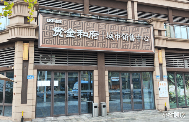 建筑外立面采用前几年流行的新中式风格,总体来说还是比较耐看,符合大多数人审美,售楼部则摆在它的沿街门面这边。