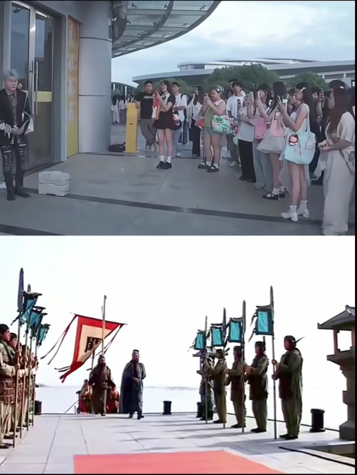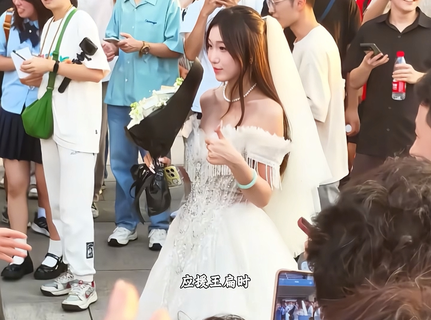 值得一提的是,在车站外,还有一位穿着婚纱的姑娘在等待王扁的到来,这与当年王源粉丝穿婚纱参加他的演唱会如此相像。