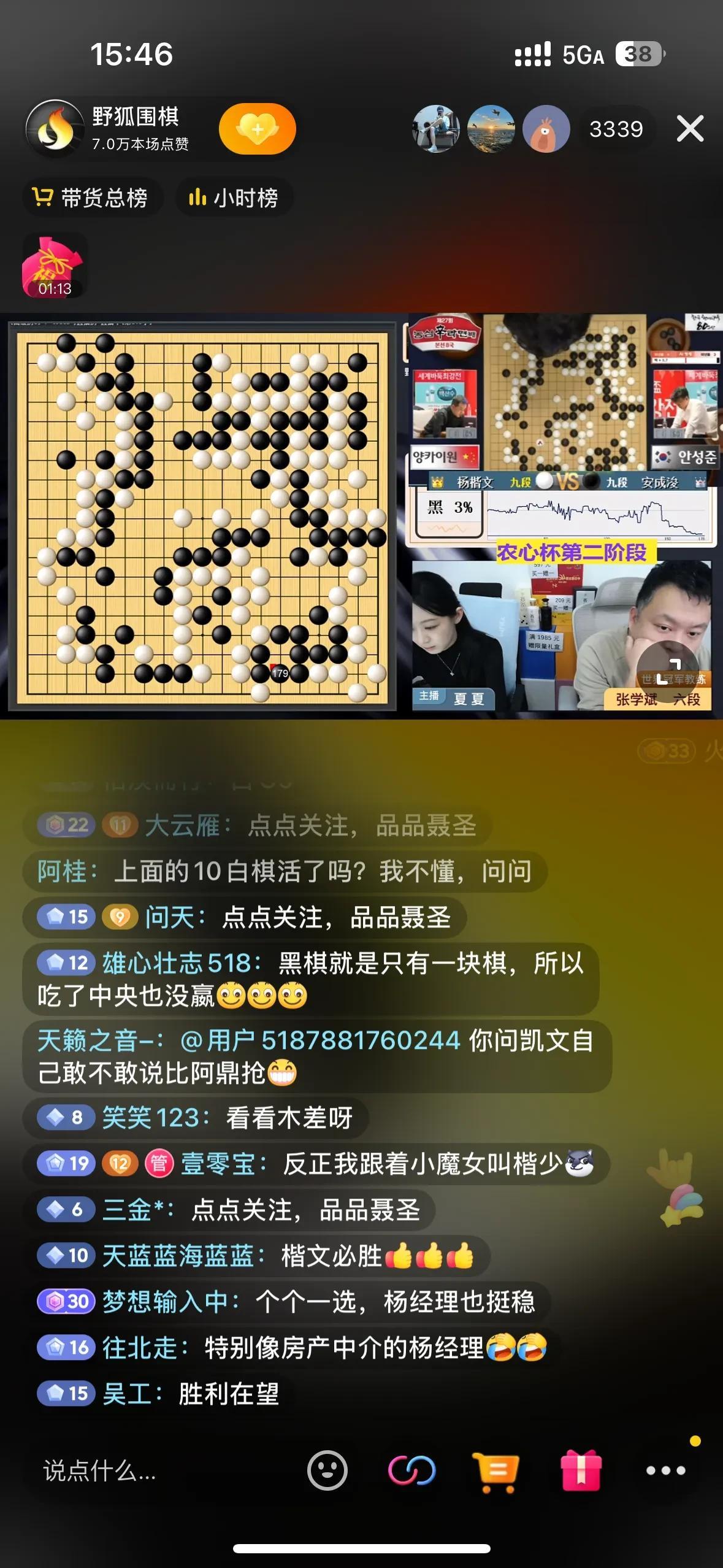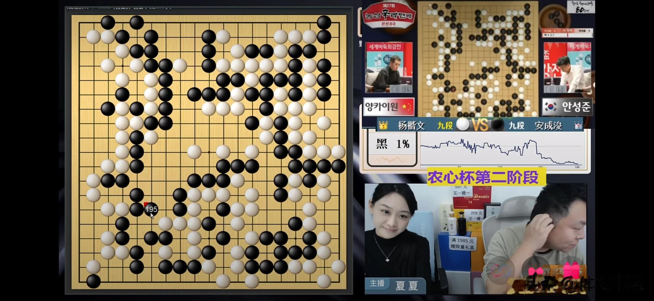 今天13:00,第27届农心杯世界团体赛第八局比赛开枰, 新科春兰杯世界冠军中国杨楷文九段首次守擂,韩国安成埈攻擂!