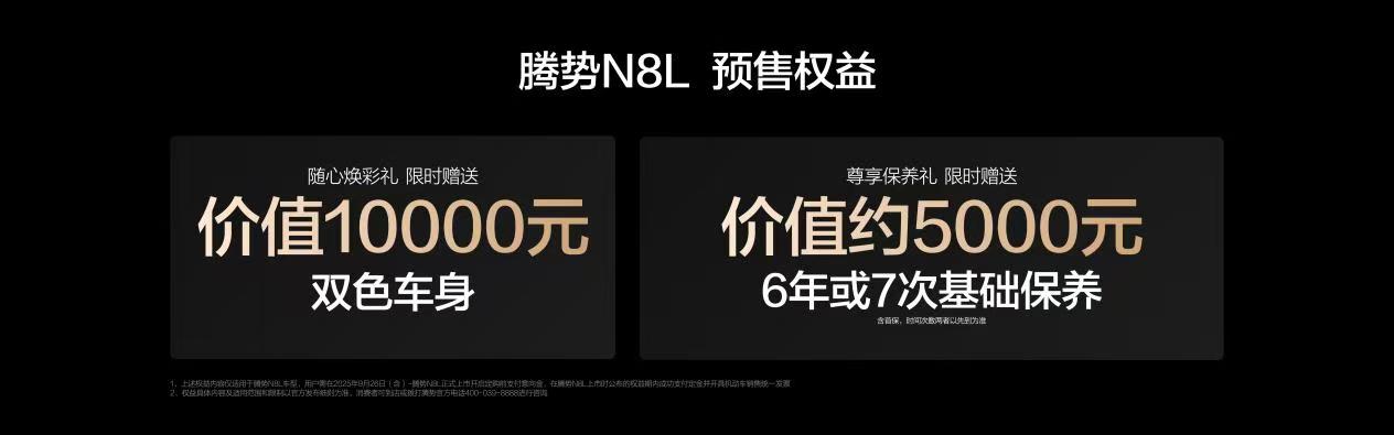 9月26日,腾势N8L正式开启预售,预售价31.98万-34.98万元,这款聚焦家庭的大六座安全豪华SUV,与N9组成旗舰双子星矩阵,重新定义家庭出行体验。