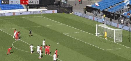 不过转眼间,球场上就是风云突变,似乎是已经摸透这支中国队的踢法,新西兰在比赛第15分钟给出了回应,右边路连续传导后皮球来到右侧,随后伊萨克-休顿的传中直接是来到禁区找到比杜瓦,结果后者抢点头球击中球门立柱弹出,中国队逃过一劫!在半场结束前国足终于还是没能够顶住对手的高压,第45分钟何宇鹏在防守对方球员突破之际伸腿,对手也是耍小聪明应声倒地造点,最终新西兰球员萨顿点球攻破国足大门,半场新西兰取得1-0的领先。