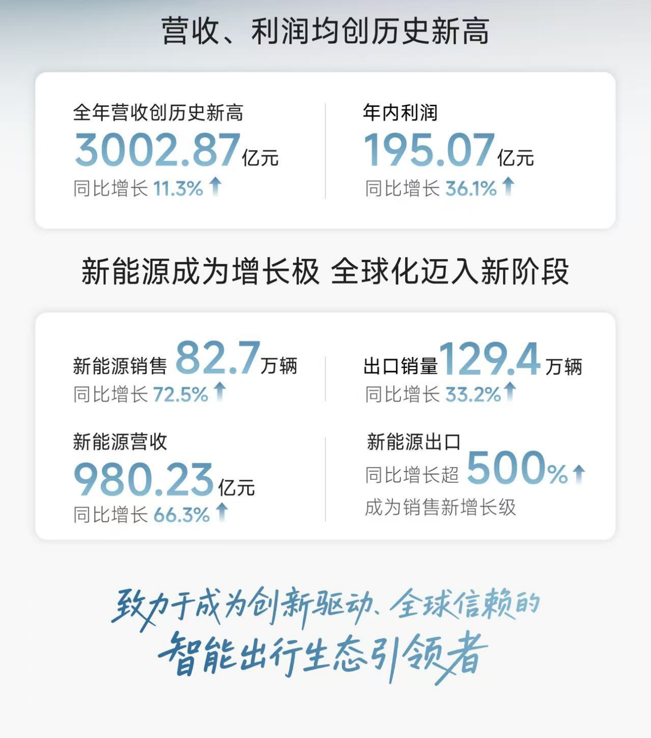 2025年,奇瑞汽车以一份营收破3000亿、净利润增36.1%的业绩公告,向市场展示了其独特的盈利模式。在行业普遍追求规模扩张的背景下,奇瑞的“增收更增利”显得尤为突出。拆解这份成绩单可以发现,其利润增长的根源在于抓住了结构性红利,并以全球化的视野实现了从“制造输出”到“品牌与技术输出”的转型。