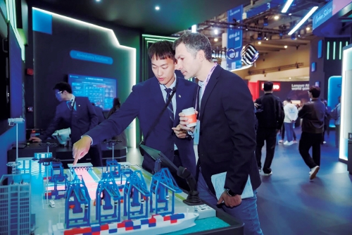 AI深度融入行业。在AI+新型工业化展区,沙盘演示面向石油化工行业的AI大模型服务体系,提升效率与平稳率。AI+智慧城市实现城市治理事件秒级响应与闭环处置。AI+智慧港口、AI+智慧教学等解决方案,将“中国方案”变为全球实践。