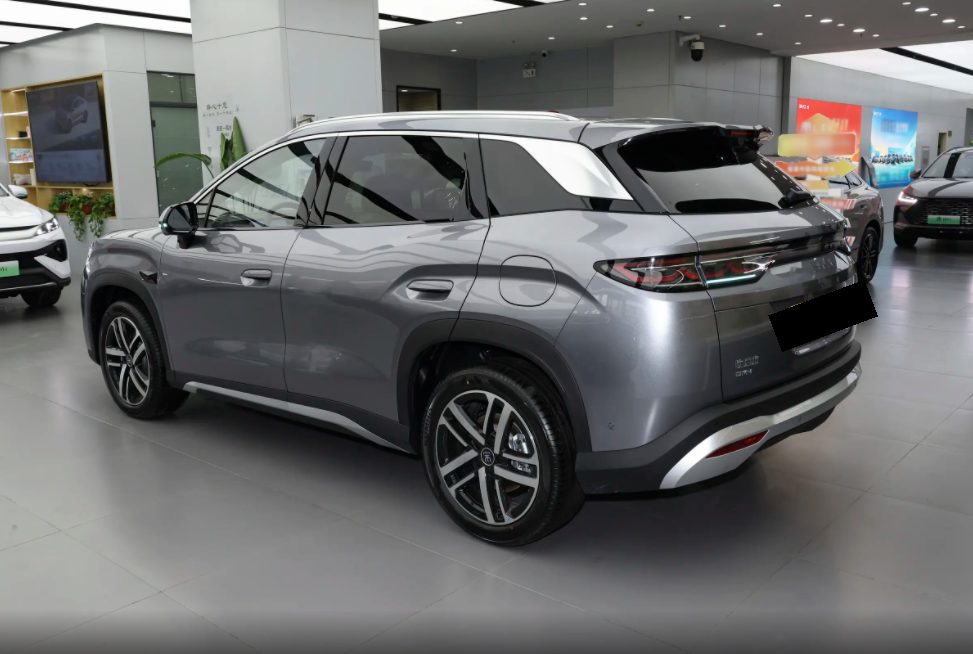 26款宋L DM在侧身设计上同样采用了简洁的设计风格,并且门把手也是半隐藏式的设计语言,而且后车窗玻璃也是双层隔音静谧玻璃,再加上运动轮毂和车顶行李架的存在,让车辆的运动属性更加的出众。尾部设计上,26款宋L DM的尾灯组也是采用了贯穿式的处理,而且尾部的扰流板尺寸也比较宽大,配合后包围银色的装饰条,精致程度上也是不差的。