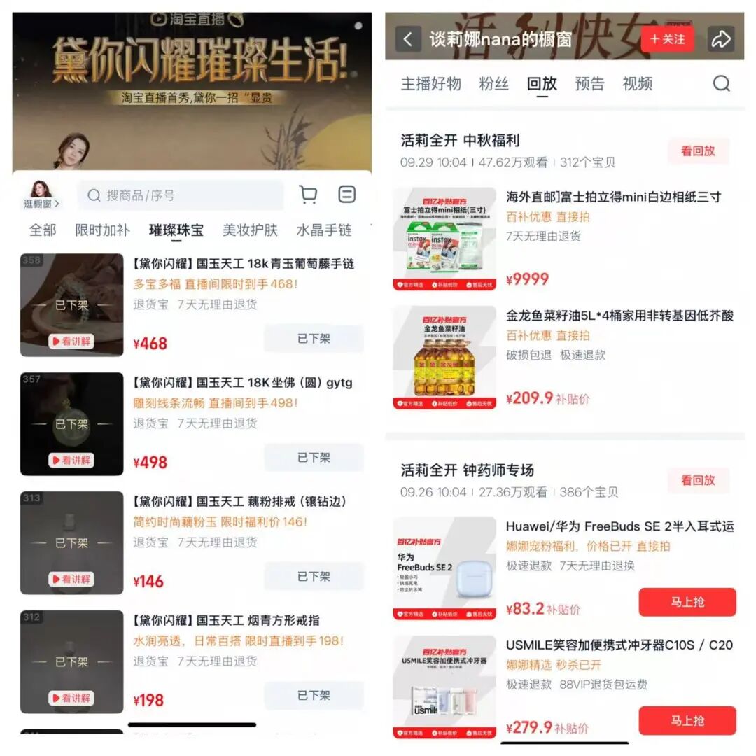 熊黛林入淘后,9月20日的直播虽收获201万观看人次,但其主打商品为定价较高的水晶手链与珠宝,销量受限;谈莉娜尽管在9月内开播16场,频率颇高,场均观看却始终徘徊在30万左右,热度不足。