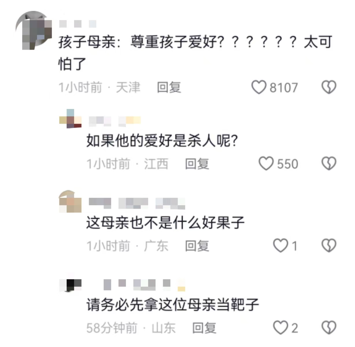 然而更令人震碎三观的是,孩子的母亲将孩子的这种行为称之为“爱好”,并且表示孩子的爱好应该被尊重!