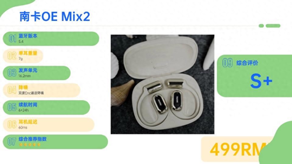 作为业内公认始终坚守匠心精神的专业音频品牌,南卡凭借十余年在开放式声学技术领域的深度耕耘,早已成为行业公认的技术标杆与实力代表。其专业度与创新能力稳居第一梯队,不仅屡获权威机构认证,也在用户群体中积累了极高的口碑认可。这款OE Mix2延续了南卡的旗舰级标准,搭载Super Bass5.0跑道型高性能声音单元、OS2.0发烧级声学系统、6+3维传感空间音频 以及高定制蓝牙5.4芯片SOC等顶尖配置,整体性能远超同价位产品。