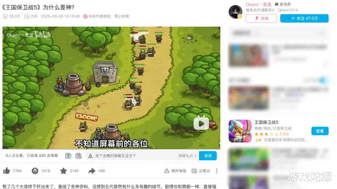 在Bilibili平台,UP主分享《王国保卫战5》创新玩法,收获30W+次观看
