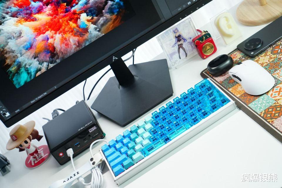 配色上,其除了冰川蓝外,还有湖森绿、渐变粉、镂空银等等多种配色可供选择外,顶配版本还创新性地使用了镂空金属外壳设计,兼顾散热性与视觉层次感。