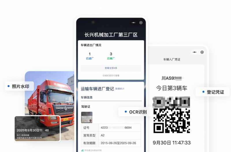 工业园区、物流仓库、施工现场等场所,对于运输高价值物资、危化品的车辆,可通过二维码进行入场前登记与资料核验,记录车牌、驾驶员信息、安全资质等。满足安全监管中关于“车辆货物进出有台账、有影像”的要求。并利用AI识别能力提升登记效率,减少司机排队等待时间。