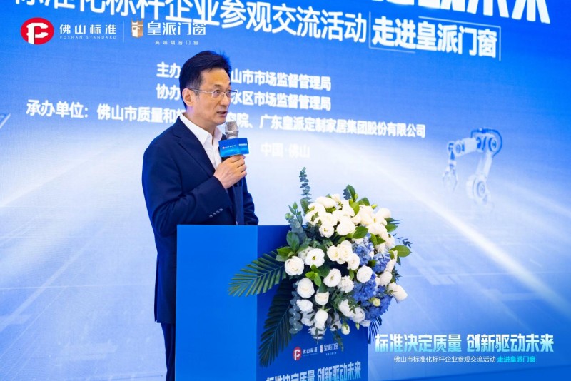 活动伊始,佛山市市场监督管理局副局长李清明发表致辞,对本次交流活动的意义给予高度评价,并对皇派门窗在标准化体系建设、质量管控与技术创新方面的突出成果给予积极评价,他表示,“标准决定质量,创新驱动未来”是推动佛山制造业高质量发展的核心路径。本次活动旨在通过树立标杆、促进交流,凝聚“追求高标准、崇尚高质量”的行业共识,鼓励企业将所学转化为实践,共同擦亮“佛山制造”金字招牌,为佛山经济高质量发展注入强劲动力。