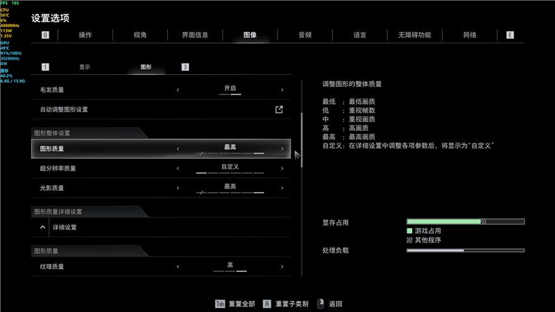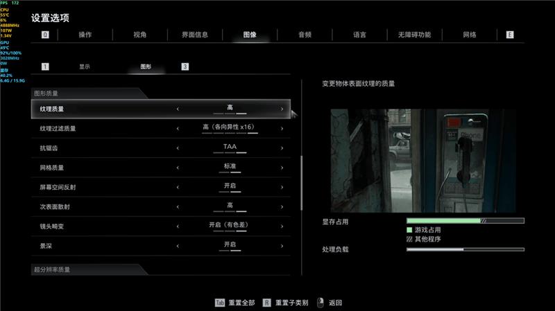 《生化危机9》游戏内画质测试设置: