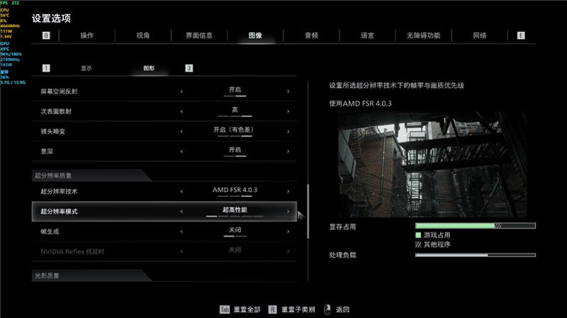 《生化危机9》支持AMD FSR 4.0.3超分辨率技术,游戏中提供了5个档位供用户选择,从原生AA到超强性能,用户可以根据自己的需要进行设置,同时超分辨率设置页面也提供了画面效果预览。