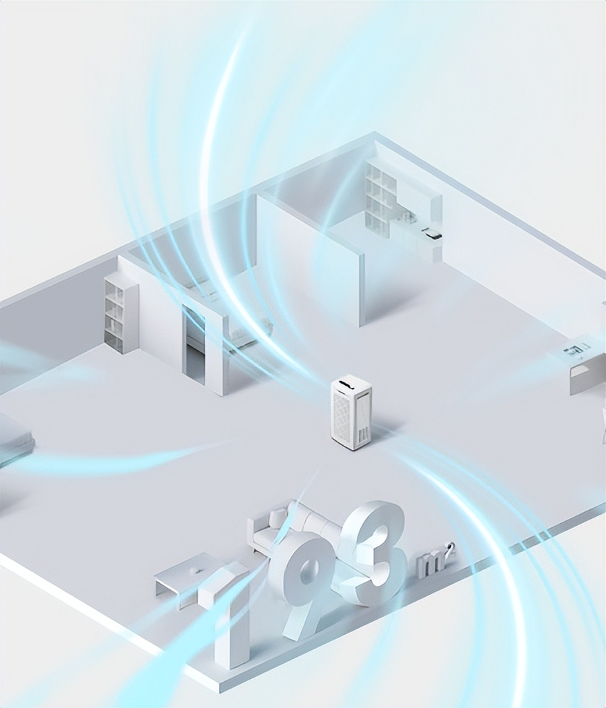 这得益于 A8 的双涡旋引擎 + 对角风道,形成 360° 立体循环气流,像 “空气扫帚” 扫过每个角落,轻松绕过家具、隔断,连阳台角落、楼梯间、挑高客厅的天花板缝隙都能覆盖,彻底告别净化死角。