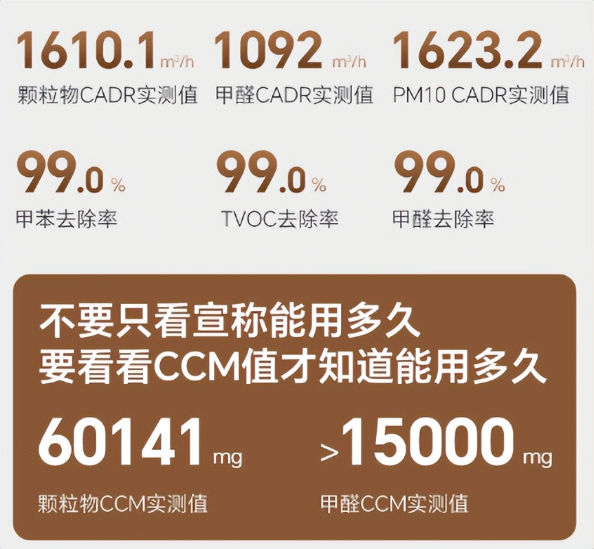 颗粒物 CADR:1610.1m³/h,每分钟可净化 26835 升空气
