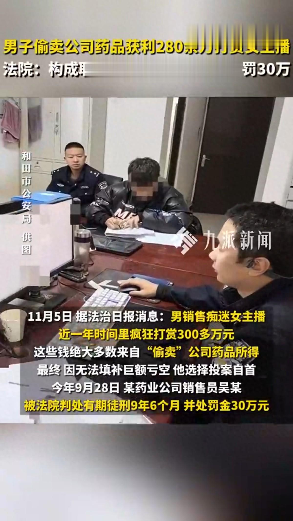 2024年6月,公司安排吴某去仓库清点药品,他利用职务便利,以“临时调货”为由提取药品,再以低于市场价的价格卖出。此后数月里,吴某变本加厉,先后非法倒卖药品20多次,获利280余万元,全部用于打赏30余名女主播。“当时鬼迷心窍了,后来越想越后悔!”他投案自首。今年9月28日,吴某被法院判处有期徒刑9年6个月,并处罚金30万元。
