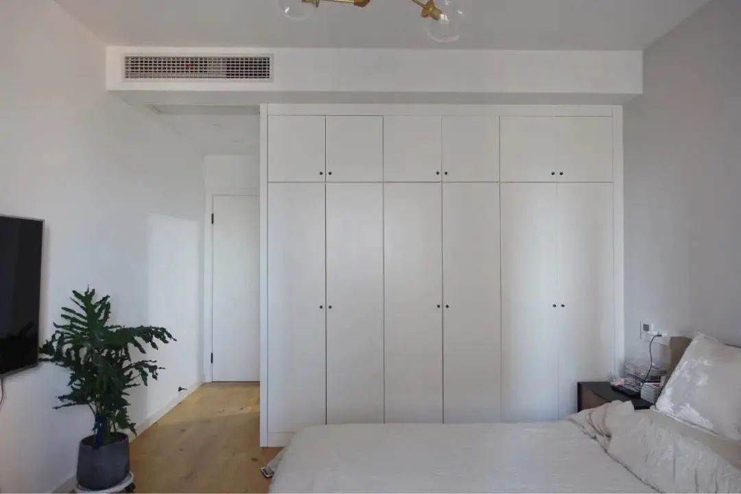 侧边衣柜如果离卧室门较近,建议门边的位置设计成开放式,避免空间压抑的同时,增加视野的开阔度和采光。