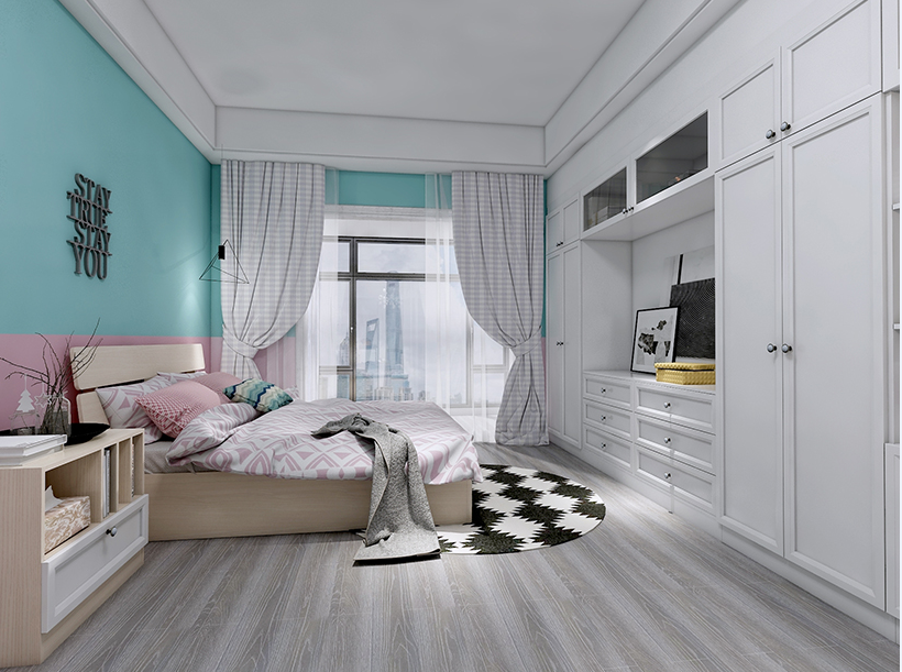 首先,尽量不要因为柜子把床挤在阴暗角落,一定要给床留受光面,阳光既可以抑菌又会让人更舒适。其次,衣柜的位置要方便日常的行为动线,便于储物的同时,不会有碍正常通行。