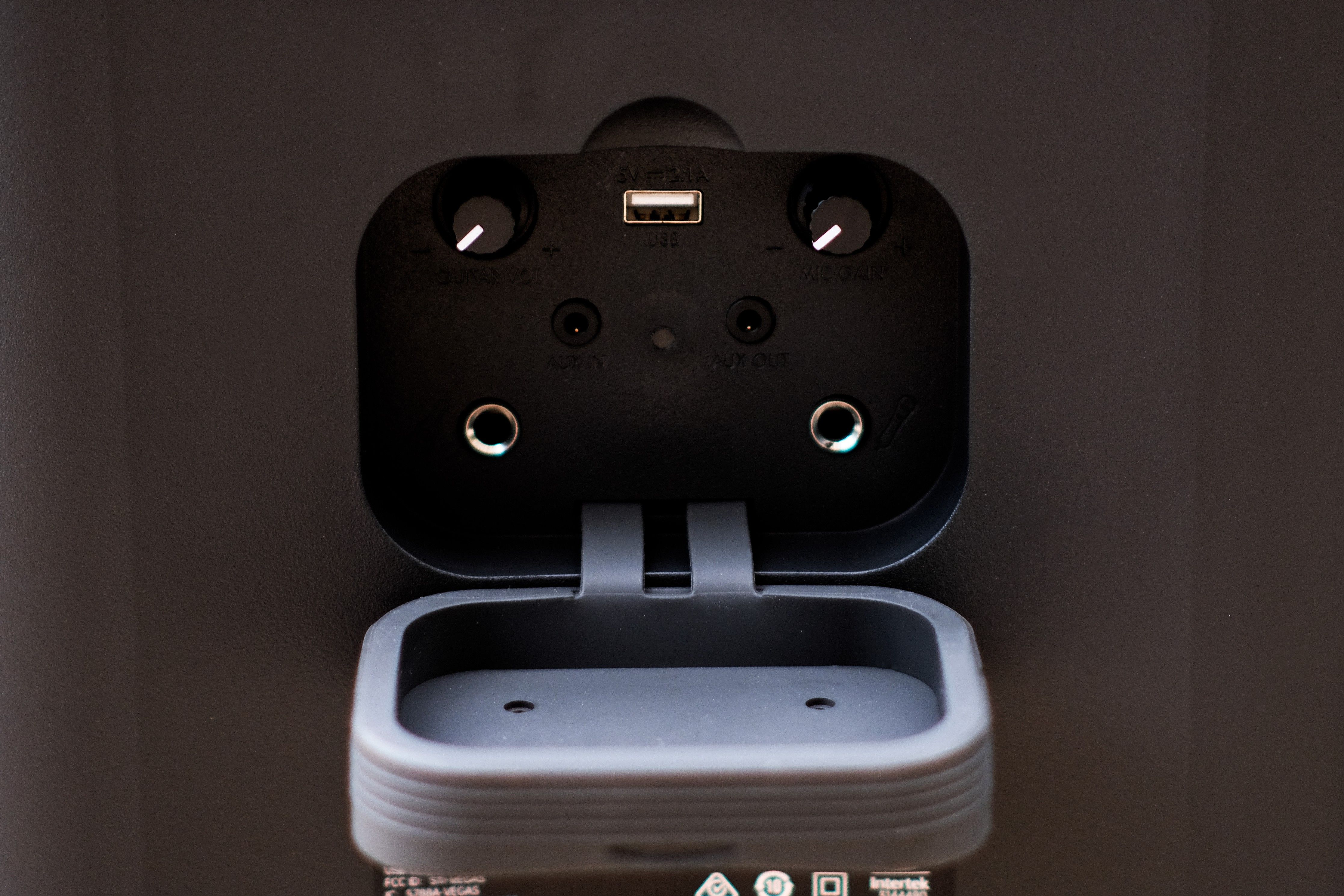 而JBL PartyBox Encore的接口就简单很多,只有 3.5 毫米输入和 USB 接口,不支持接入乐器,也没有音频输出接口,可玩性就没有那么高了。