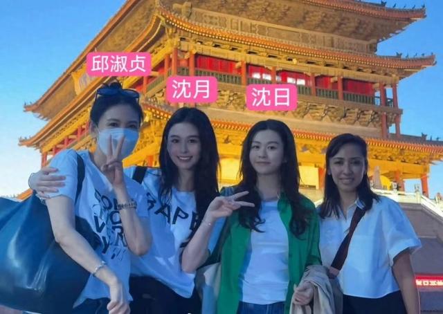 近日,邱淑贞带着两个女儿和好友同游西安古城,一行四人形成一道美丽的风景线。