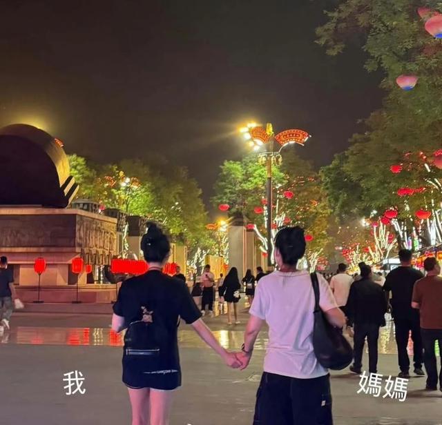 沈月和妈妈的背影,她们俩手牵手走在街上,看起来太温馨了。