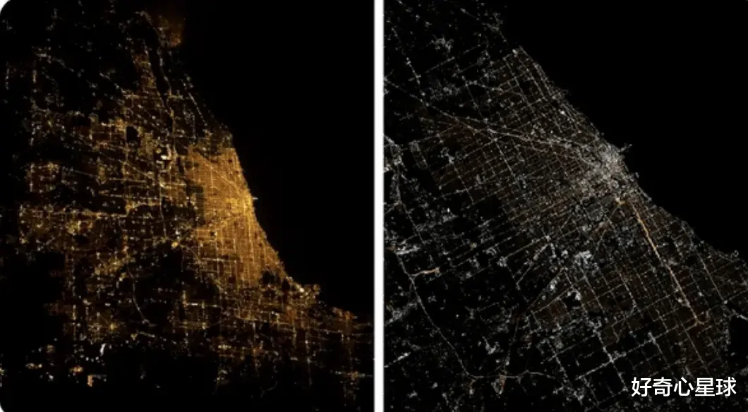 从四百公里高的国际空间站舷窗外望,地球的夜晚正经历着一场无声的色彩革命。其中,芝加哥的转变尤为显著——这座曾经在2011年的夜幕下散发着统一琥珀色光晕的城市,如今在2024年已彻底改为LED照明。