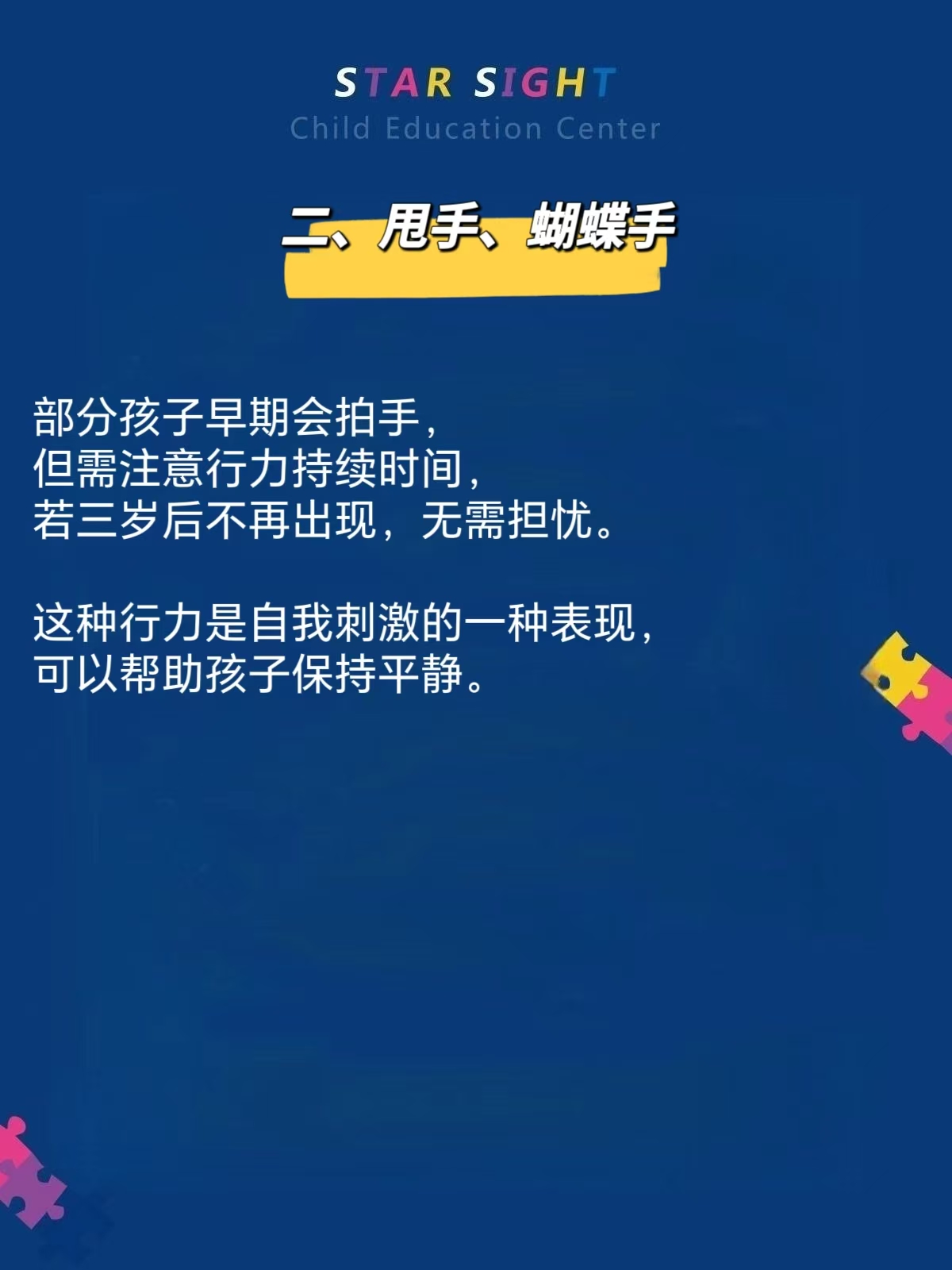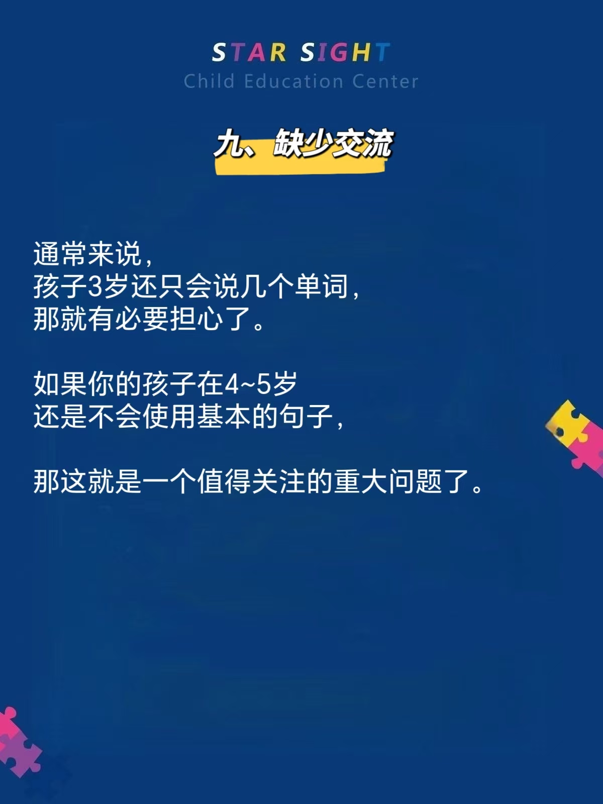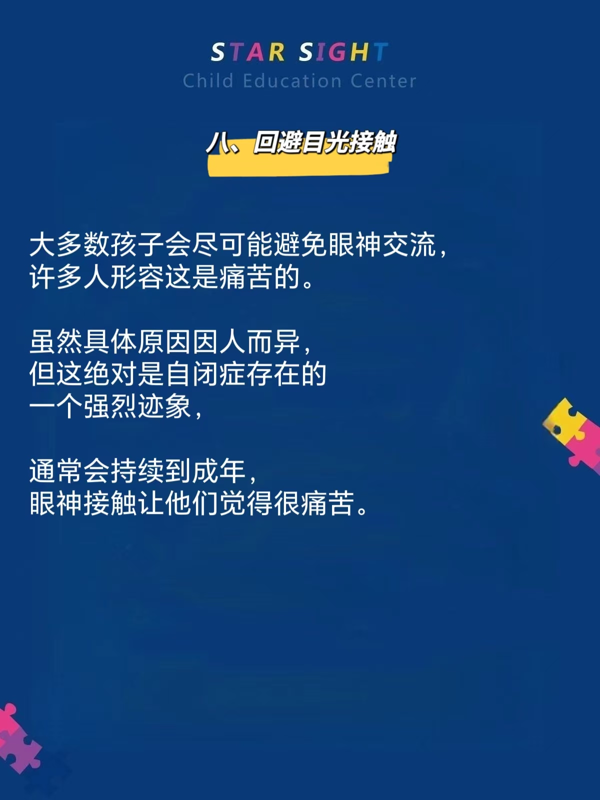 很多父母不知道什么是自闭症,直到他们的孩子被诊断为自闭症。回顾过去,会发现在孩子小的时候,就会有一些异常的行为。日常生活中,他们可能不会注视你的双眼,可能无法表达自己,但是父母没有过多留意。这些行为可能单独出现,但若多项并存需及时就医评估。