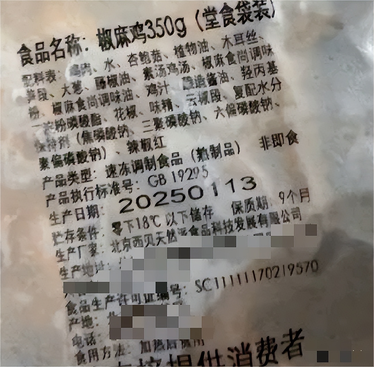 他还晒出证据:西贝后厨的椒麻鸡原材料,保质期9个月,吃法是加热后食用。