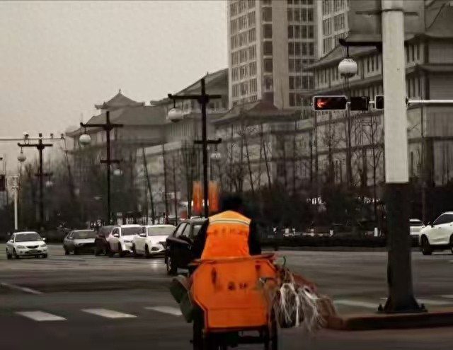 凌晨四点,环卫工老张照例开始清扫街道。