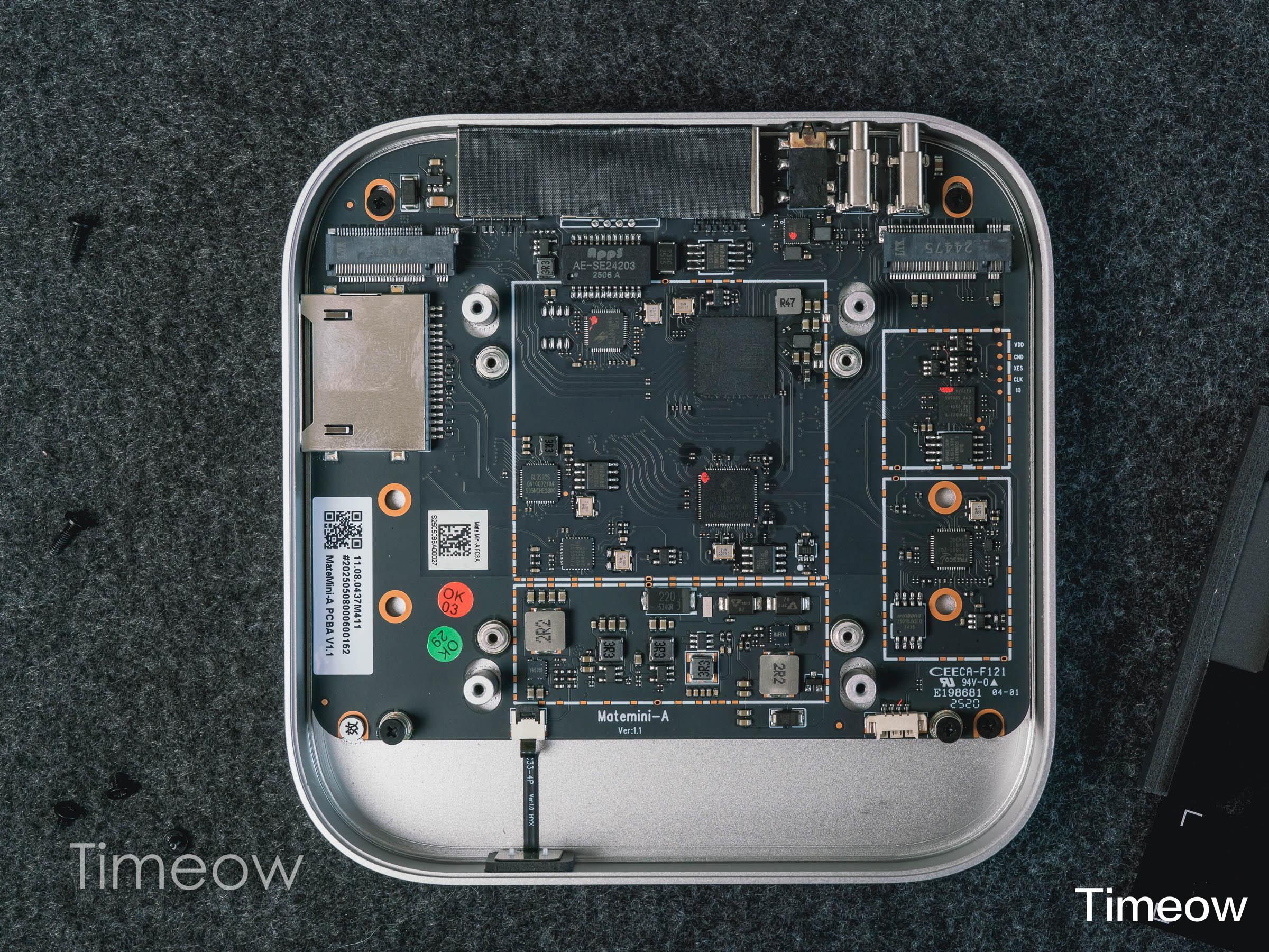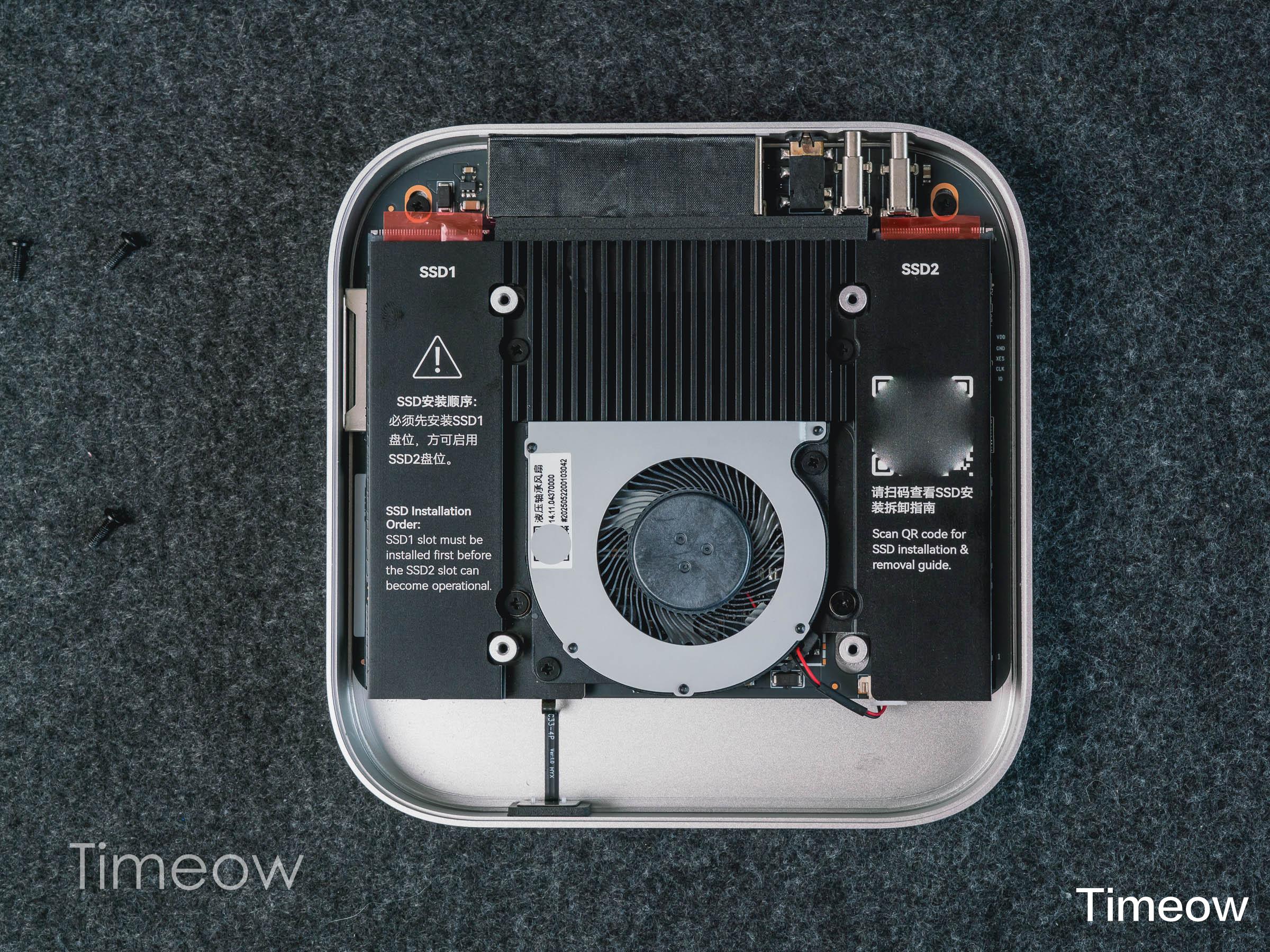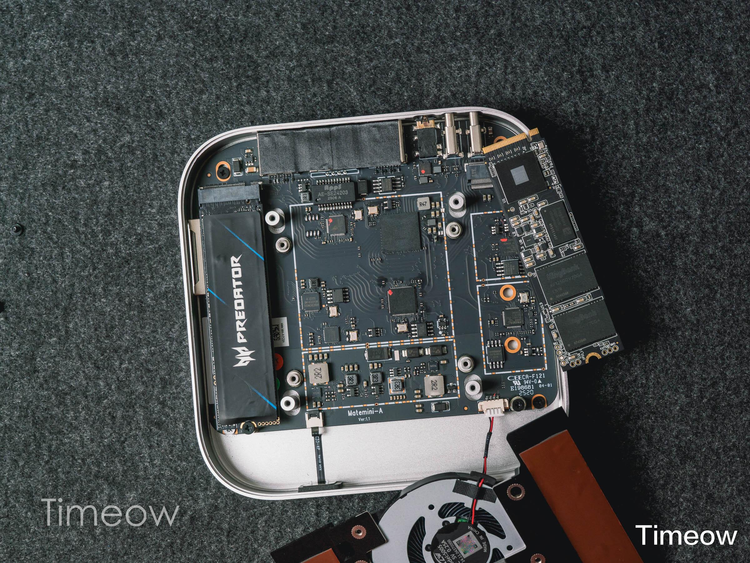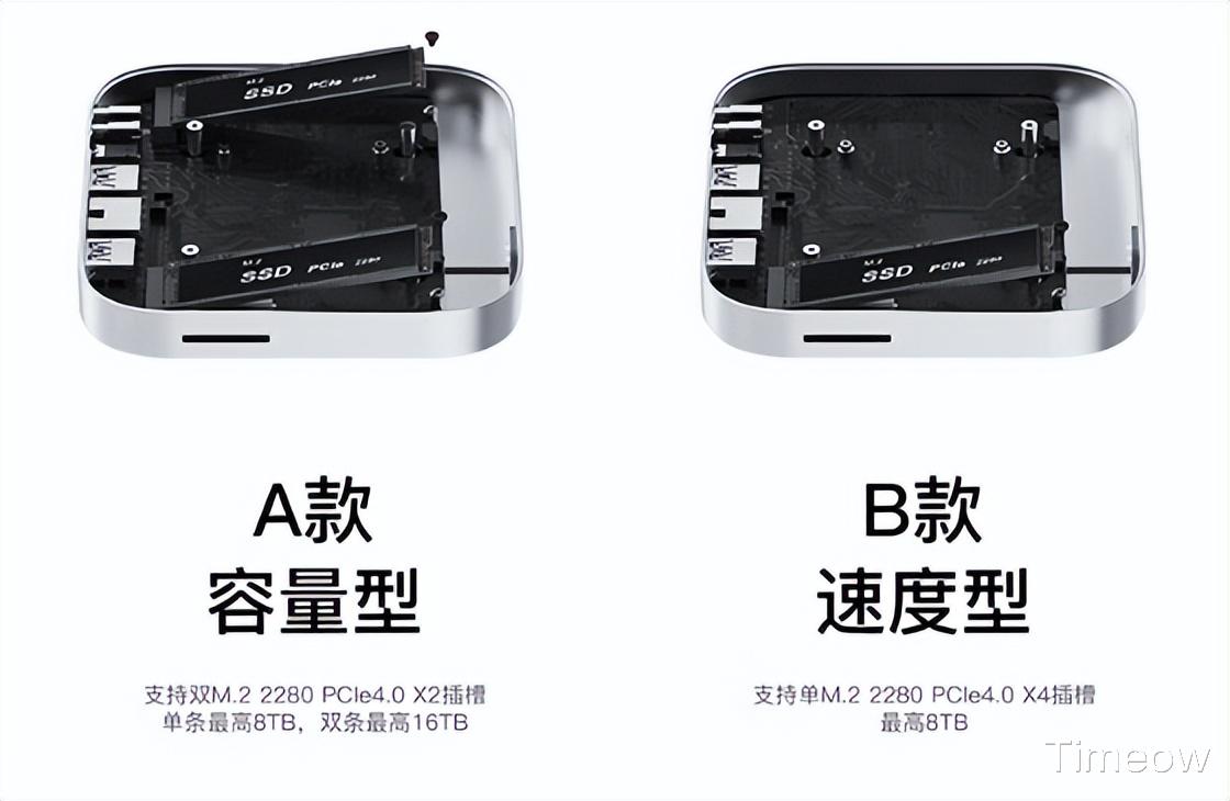 这里需要注意的是,速度型Mate mini(适用于M4 Pro芯片的Mac mini)只有一个固态硬盘位,而我手里这款容量型有两个硬盘位,更适合大众一些。