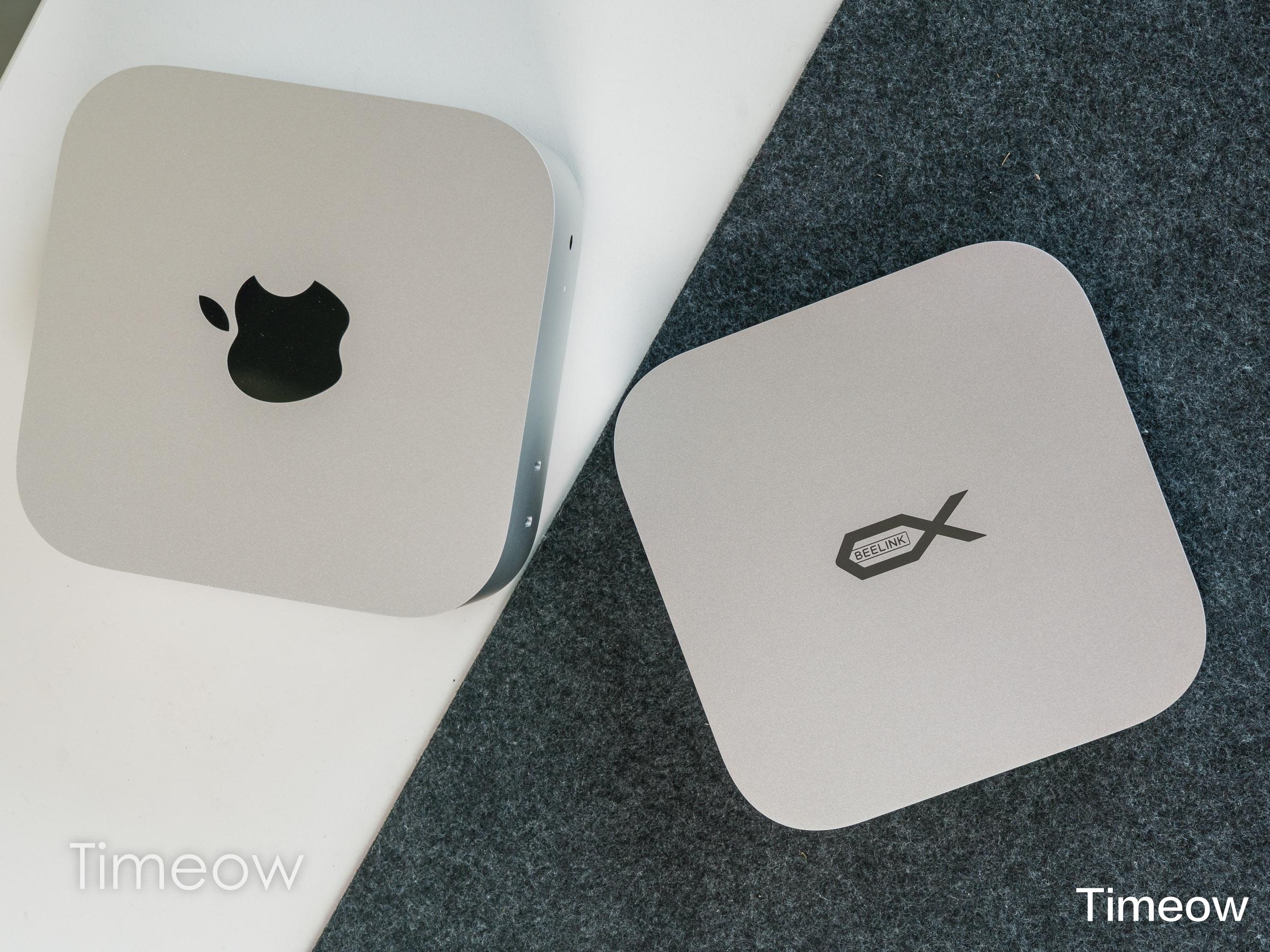 零刻Mate mini的外观设计与Mac mini如出一辙,同样使用了全金属材质、长宽尺寸也与Mac mini相接近,叠在一起如同一个公司推出的产品。