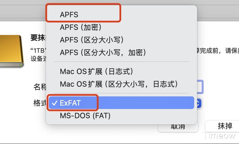 这里需要注意的是,如果你的扩展坞还想用在其他Windows等设备上,在抹掉的时候选择文件格式为exFAT格式。如果你只用在Mac电脑上,最好选择APFS。
