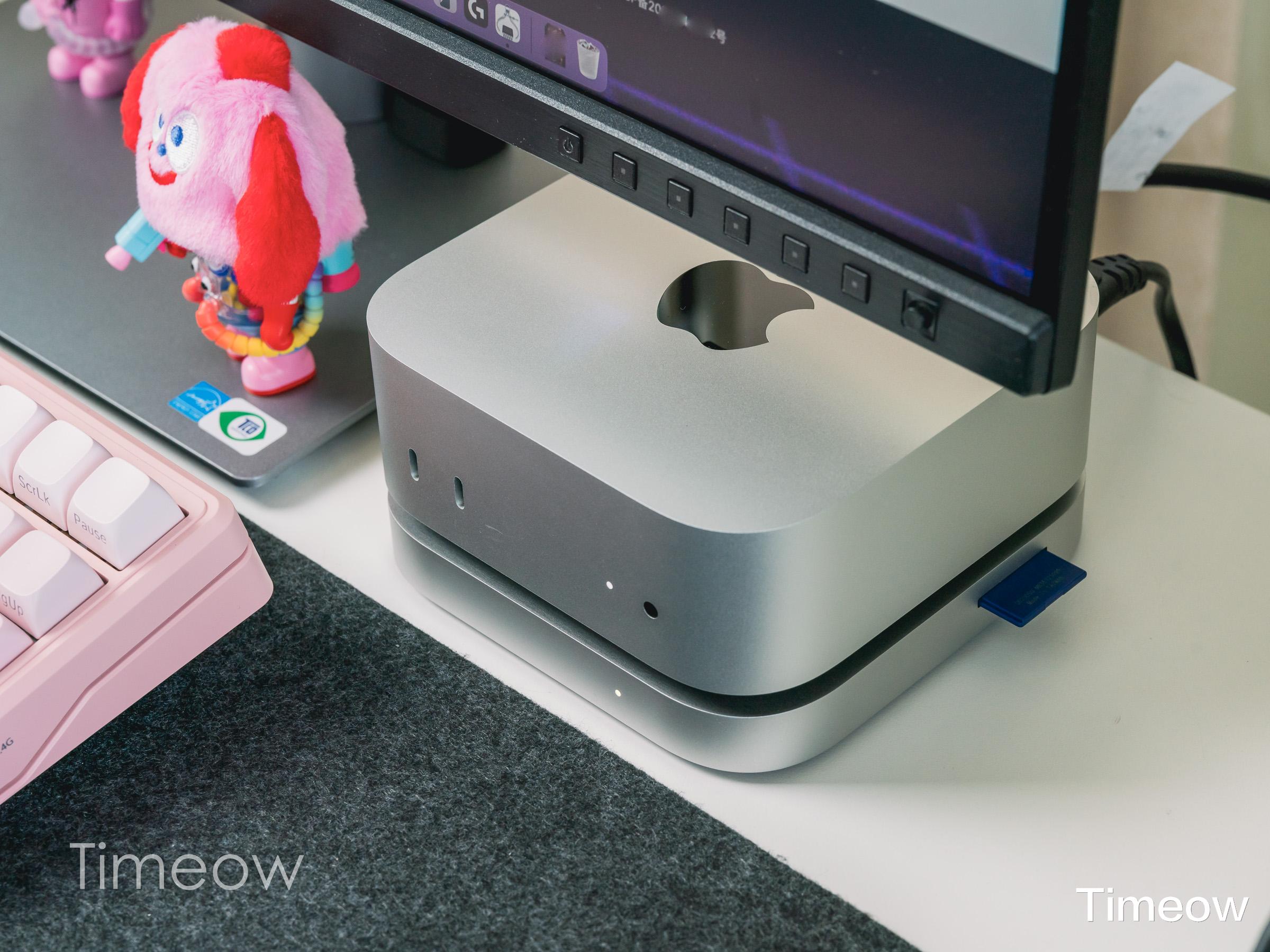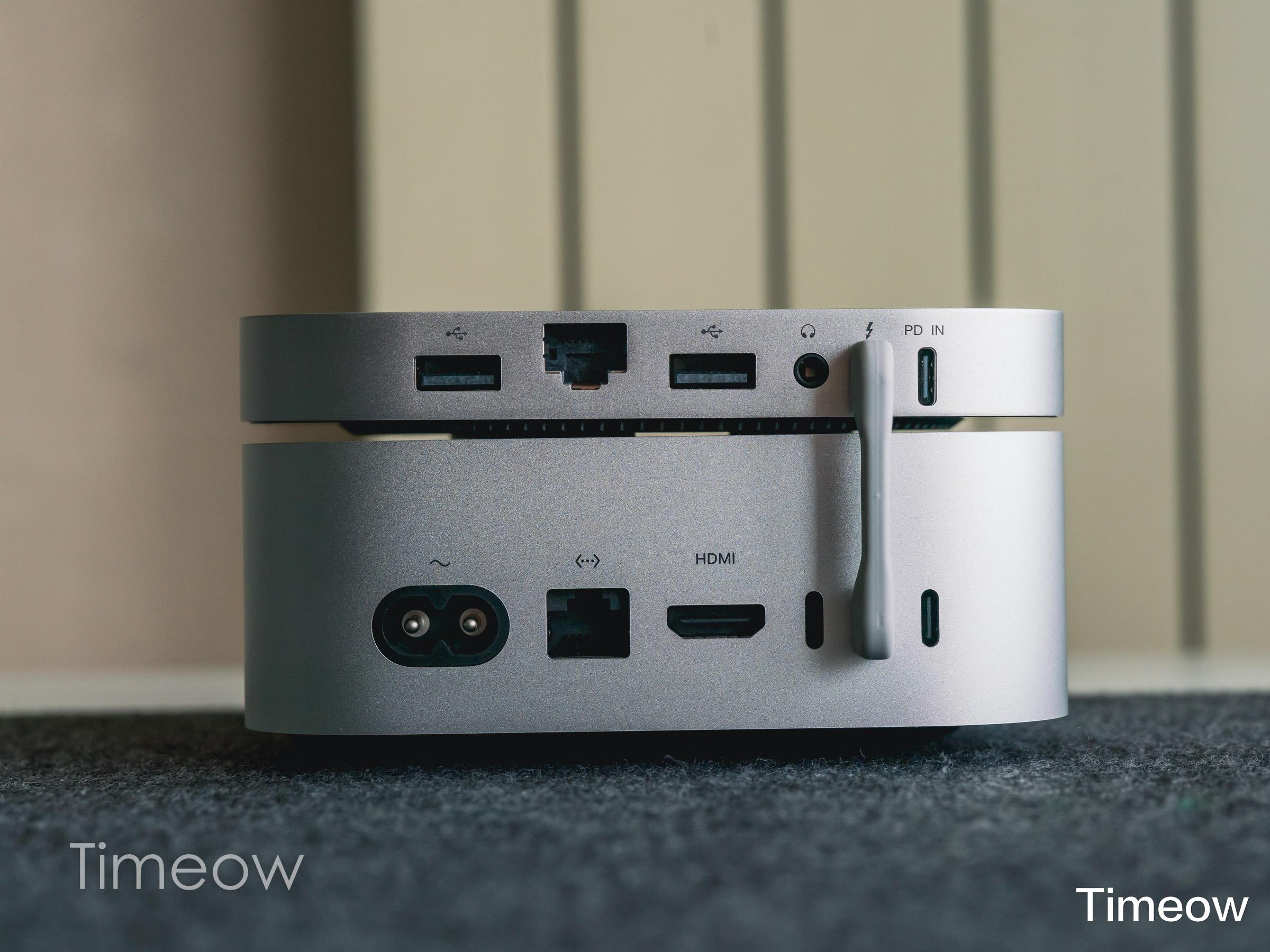它以Mac mini底座的形态,扩展出了最高16TB的存储空间,以及2个USB-A、1个存储卡读卡器、1个后置音频接口、以及一个2.5G以太网口。