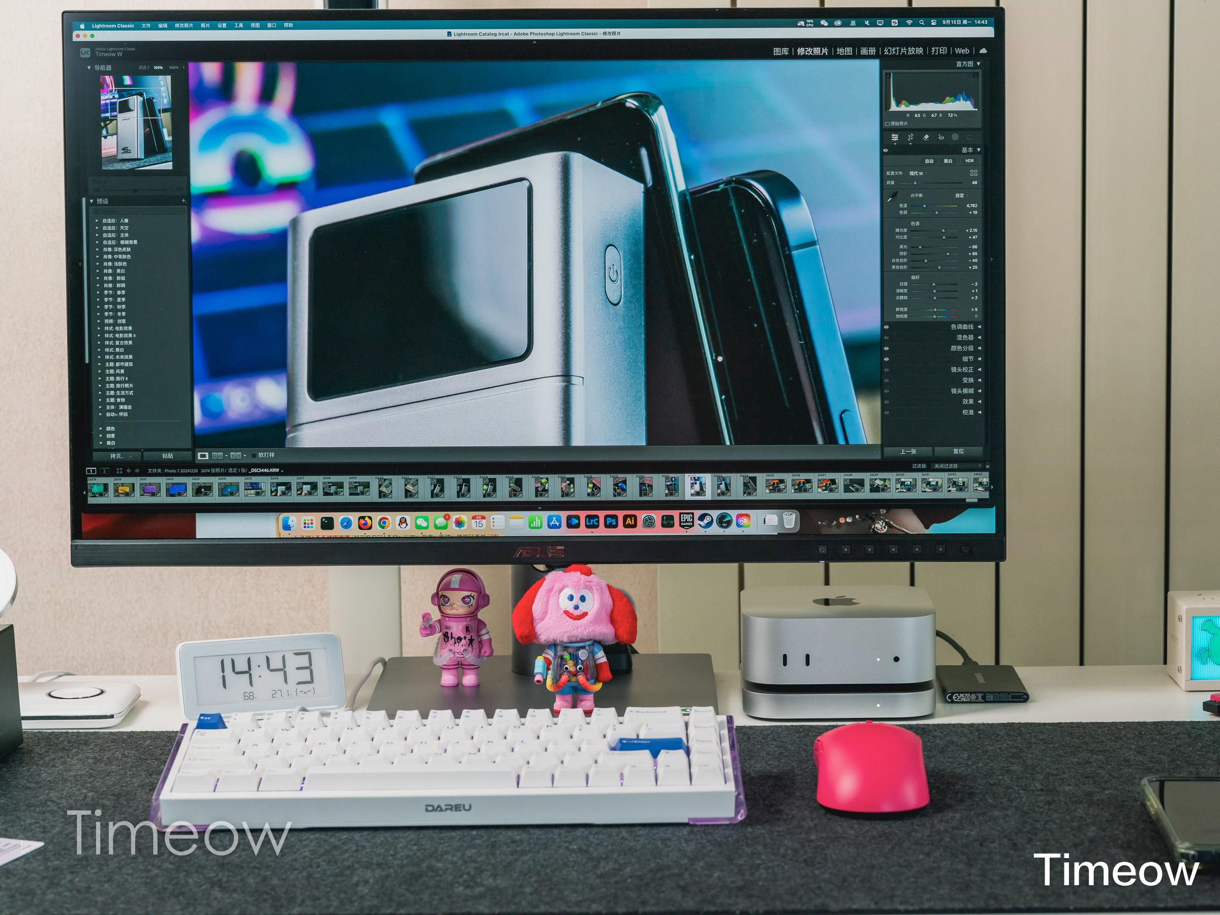 对于Lightroom这样对CPU、硬盘要求都高的图片批量处理导出工具来说,零刻Mate mini扩展坞+固态硬盘的表现还是非常丝滑的,在Mac mini上使用,调色后预览图生成速度很快、导出JPG格式的效率也很高,我感觉与Mac mini内置硬盘的体验无异,拿来干重活儿妥妥的!