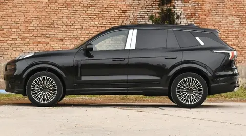 车辆侧面设计简洁,运动感更强。5042mm的车身长度搭配2984mm的轴距,使车辆线条流畅,车身比例协调,展现出稳重的姿态。整车采用悬浮式车顶设计,配备行李架和可开启的全景天窗,进一步提升了车辆的实用性和档次感。车辆运动气息进一步增强,隐藏式门把手和20英寸光辉轮毂的加入提升了整体的运动感。尾部采用贯穿式尾灯设计,中间位置有领克的英文标识,双边四出的排气布局为消费者带来更加舒畅的视觉感受。2026款领克09探索版在外观设计上新增了两款车色:暗夜紫和山野绿,更好地满足年轻用户的个性化需求,提升车辆吸引力。