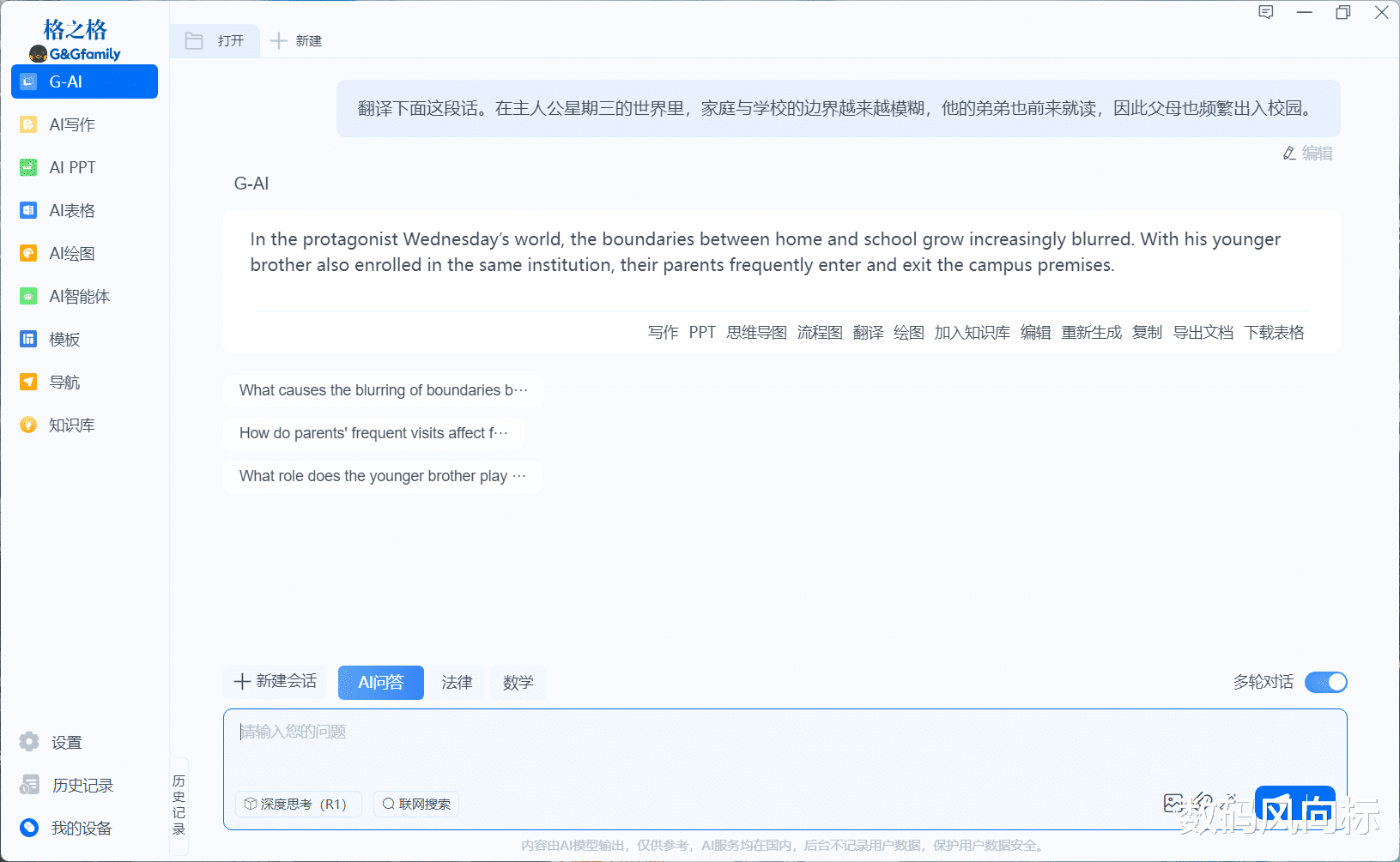 翻译功能是另一个亮点。长按语音翻译键说话,键盘能够快速将中文翻译成英文或其他语言。短按则可以进行划词翻译,更灵活的是,通过AI问答也可以翻译各种内容,这对于需要阅读外文资料,或者是和国际客户沟通的的用户很有帮助。格之格支持的语种数量确实很多,但实际使用中我发现,满足基本的办公场景没什么问题。
