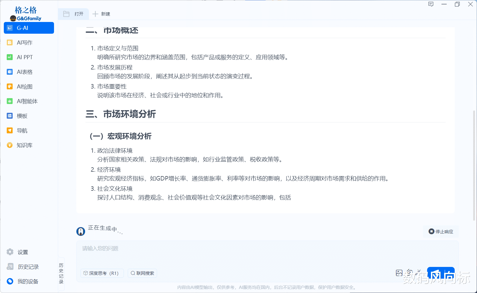 在实际体验中,我尝试了几种典型办公场景。首先是文档处理,长按AI键后说出指令“生成一份关于市场分析的报告大纲”,键盘确实能够快速生成一个结构合理的大纲,节省了从头构思的时间。根据我们的实际需求,我们可以进一步调整和细化Prompt,从而满足特定需求。