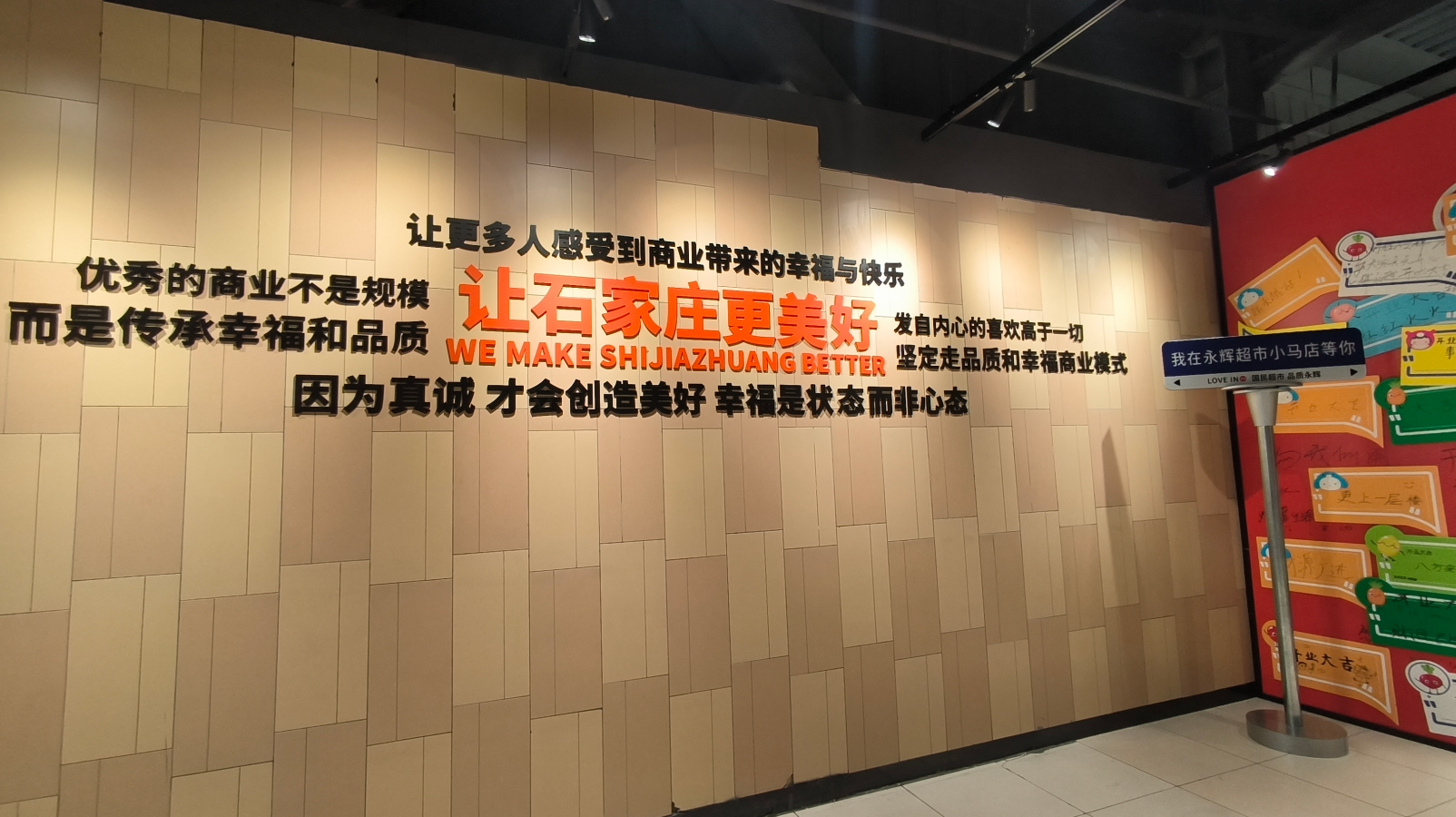 超市里随处可见诸如“做石家庄最具幸福感的品质超市,让员工幸福、顾客幸福!”、“坚定地走品质零售路线,绝不因价格而降低品质”的红色条幅,体现了永辉超市将品质进行到底的决心。