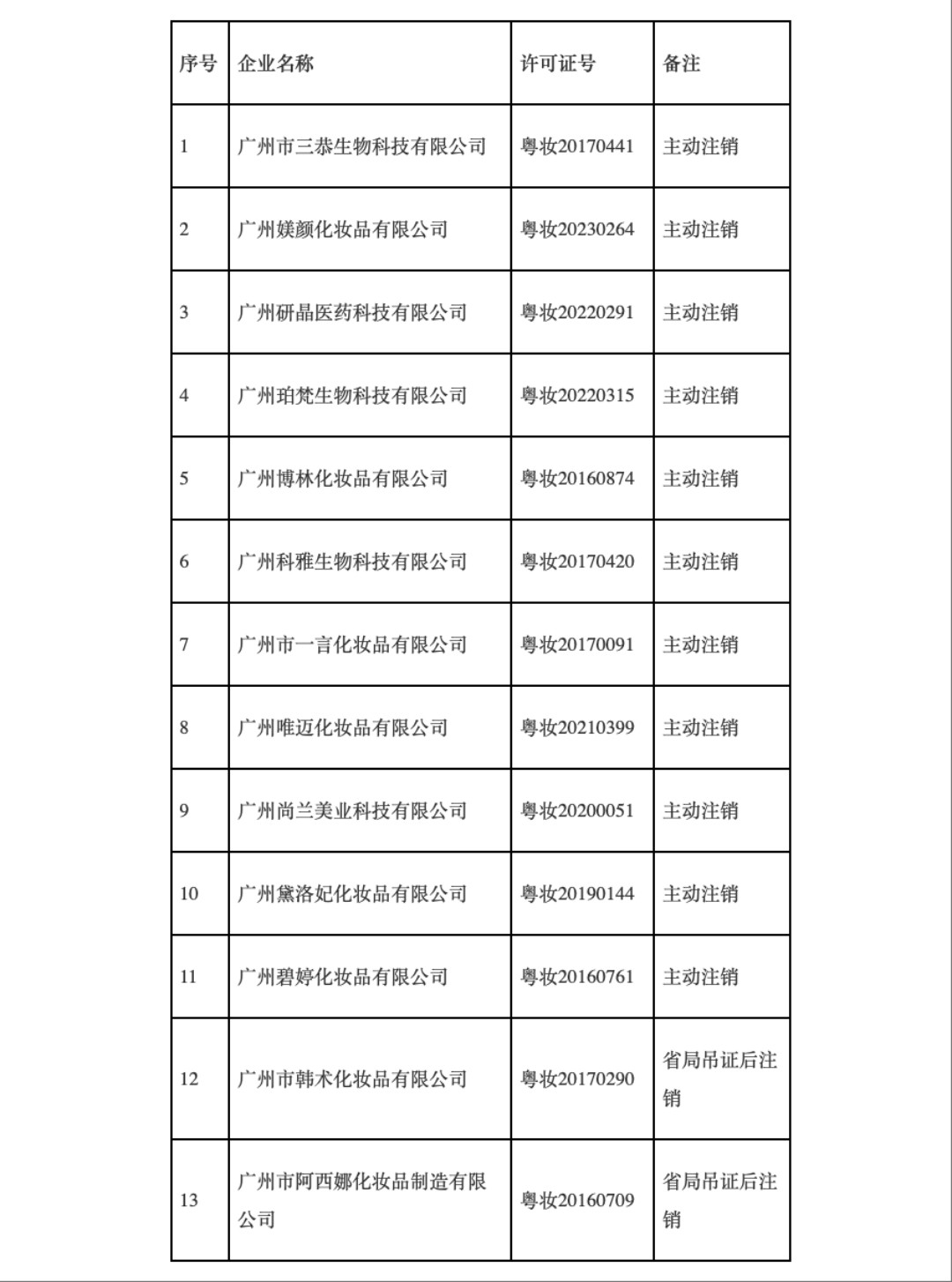 广州13家企业《化妆品生产许可证》被注销!