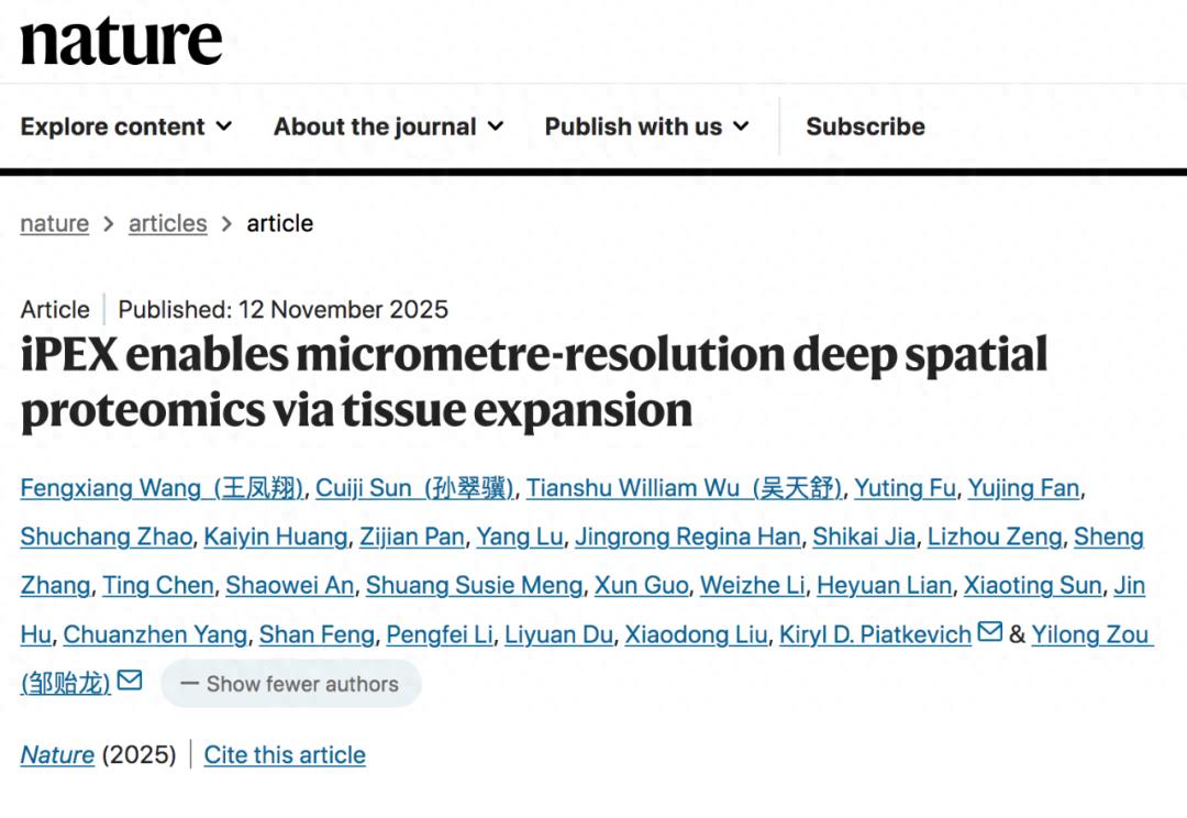 1.Wang, F., Sun, C., Wu, T.W. et al. iPEX enables micrometre-resolution deep spatial proteomics via tissue expansion. Nature (2025). https://doi.org/10.1038/s41586-025-09734-0