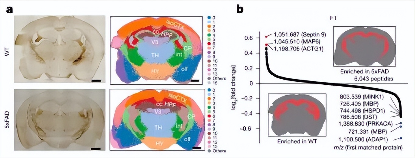 该技术基于水凝胶的蛋白质锚定、组织膨胀与质谱成像分析,能够让研究者在不依赖抗体的前提下,以 1-5μm 精度和 10-100 倍灵敏度提升,绘制出蛋白质的空间分布图。它不仅让蛋白质的“地理坐标”清晰可见,也在阿尔茨海默症模型中捕捉到早期线粒体与脂肪酸代谢紊乱的信号,为揭示复杂疾病的分子图谱开辟了新路径。
