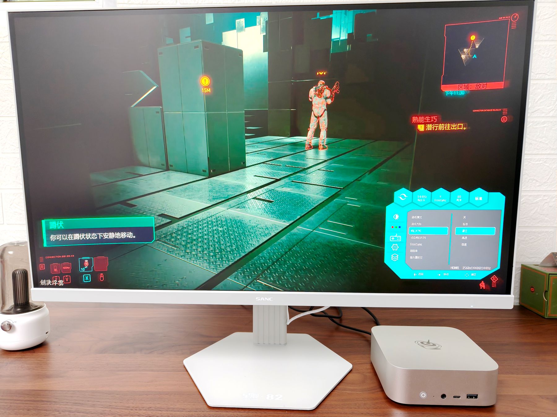 实测我的迷你主机的显卡是AMD核显780m,连接 DP1.4 接口,在 2K 分辨率下轻松跑满 210Hz,对比之前我的144Hz显示器,转动视角时的画面撕裂、拖影完全消失了,尤其是像在玩枪击类游戏,敌人的移动轨迹相当清晰,如果从普通高刷显示器换到这台显示器玩游戏,最直观的感受就是感觉敌人的移动就像慢动作回放,毫不夸张地说。