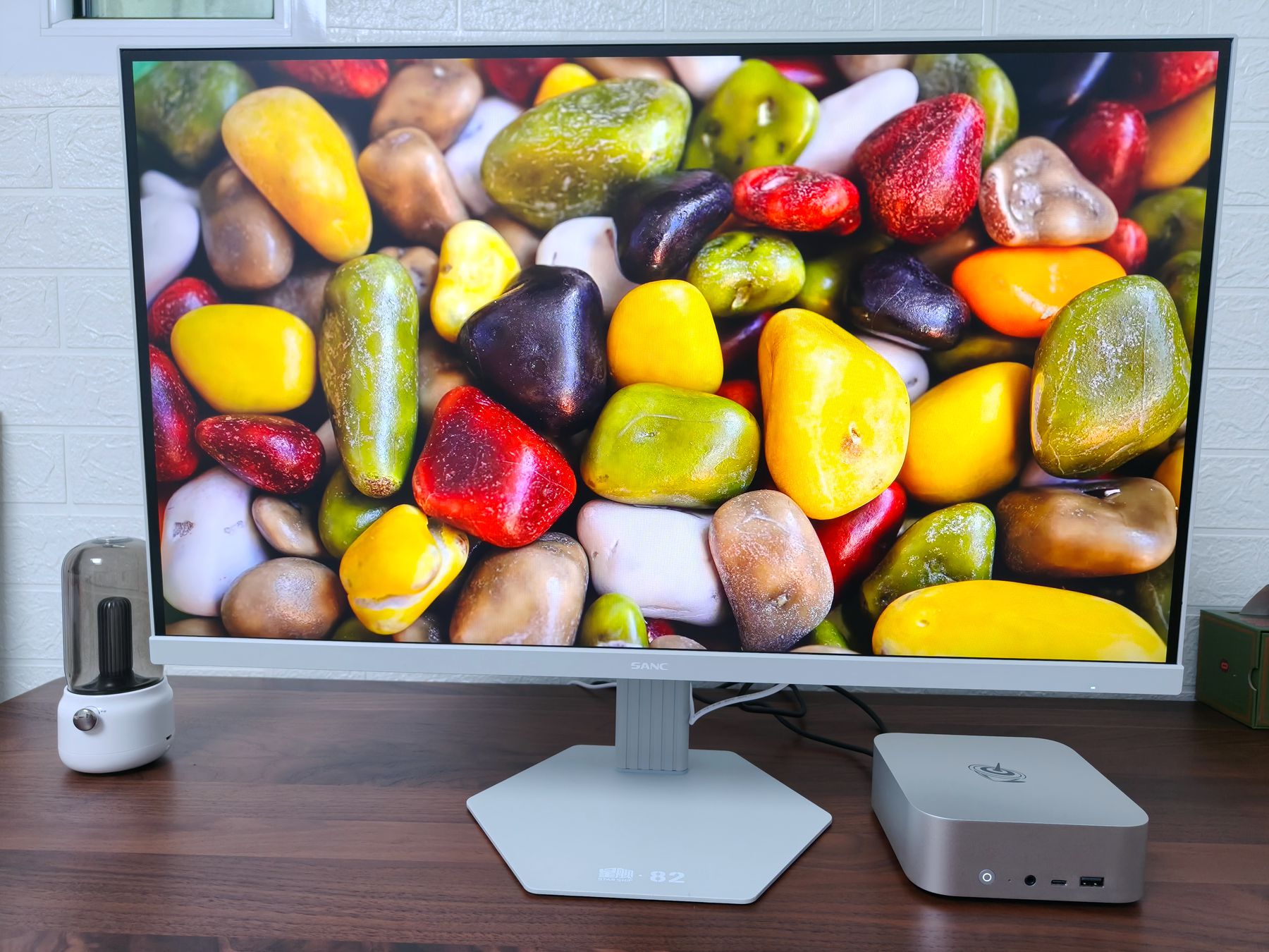 前阵子刚入手了一台零刻的迷你主机,和之前的黑色的显示器不太搭,想着买一台白色的显示器,我的刚需是2K高刷,看了看大多得1500-2000这个价位,发现SANC 盛色刚推出了一款星舰系列 S82,800多就能拿下,而且支持最高2K 210Hz 的超高刷新率,和零刻小主机摆一起颜值非常高。用了有一段时间了,今天抽空和大家聊聊我的这台白色的SANC S82显示器。